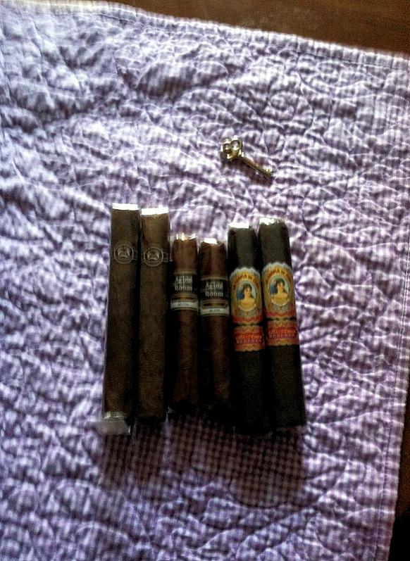 2 - Gurkha Beast (6.5" x 58) 2 - Gurkha Widow Maker XO Maduro (6" x 60) 2 - Gurkha Black Dragon Fury Gran Torpedo (7" x 56) 2 - Gurkha Titan (6.2" x 56) 2 - Gurkha Centurian (6" x 60) 2 - Gurkha Ancient Warrior Presidente (8.5" x 52) I'll have one Presidente for election night returns. |