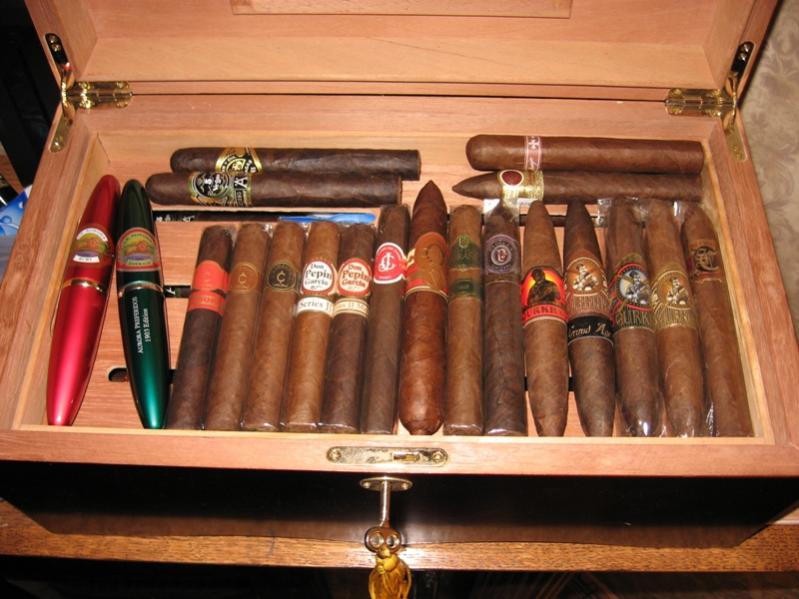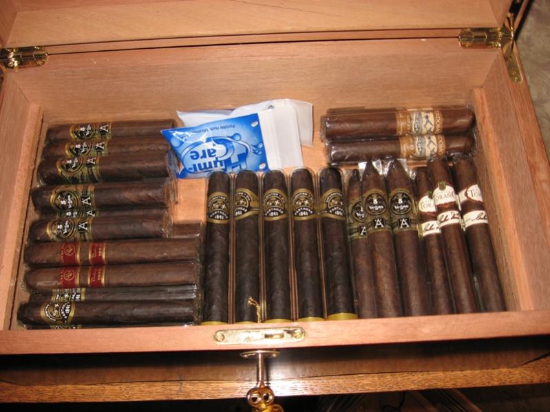 A friend of mine just gifted me with one of his old ones! It's nice Thompson Humidor with a glass top and builtin hygrometer. Here's a couple of pics. Only the top shelf is full, the bottom is completely empty --I gotta do something about that! http://i200.photobucket.com/albums/a...od/humi1-1.jpg http://i200.photobucket.com/albums/a...ngod/humi2.jpg I PIF'd my previous smaller humidor to another friend who is also just starting out! |