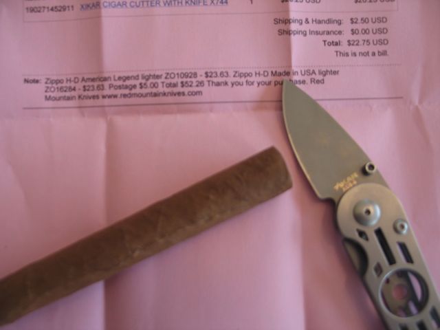 Attachment 1175 It has a hole in the center so as you fold the blade you can clip a cigar. While it won't be my everyday cutter I do carry a knife and this one will be my cutter when I am without another one. I was pleased with the job it did on the cigar in the picture. I found one on eBay for $22.75 including shipping. They even through in a decent sheath. It is from www.redmountainknives.com I am not sure if they have any more but it is worth looking into. |