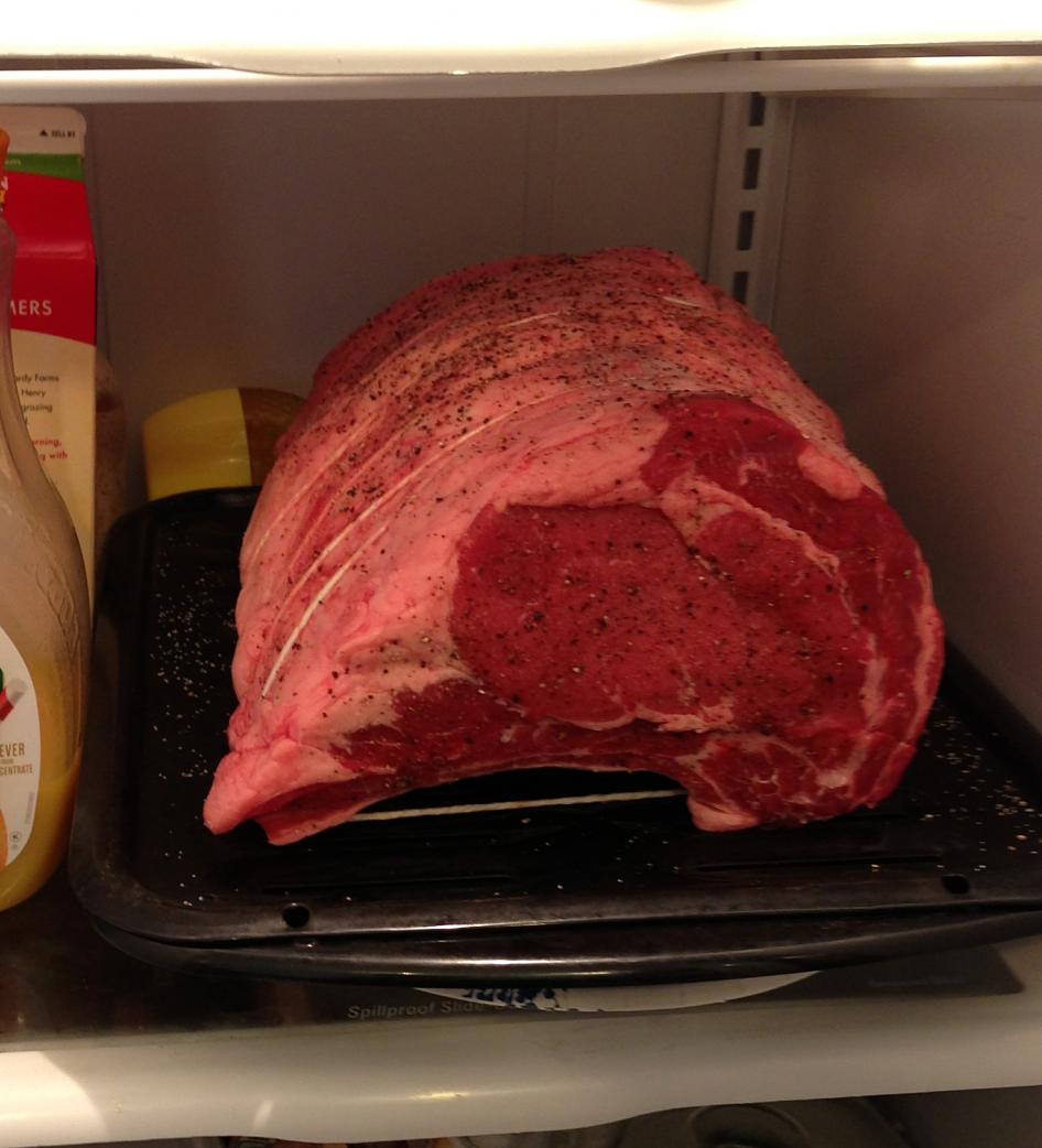Having a get together tomorrow night. Giving 10 of my closest cigar smoking, beer drinking friends pretty much free reign at my stash. We can't smoke and drink without eating, so here's the beautiful cut of meat that I got. 14lb bone-in Ribeye primal. Cooking it on the Big Green Egg. Going to be insane.