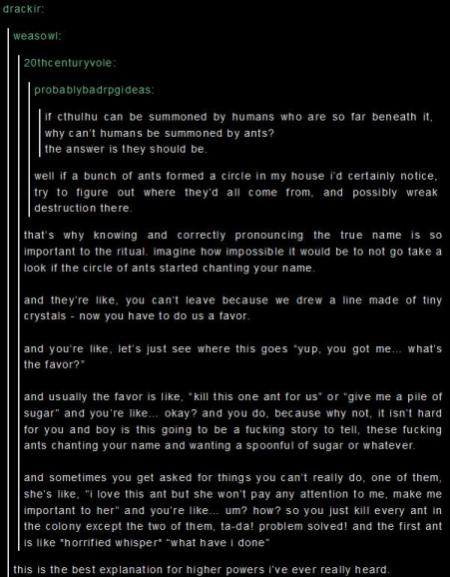 It seems to me that this could very well have been written in a book by Terry Pratchett. The last part would probably have been said by Rincewind.