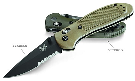 I recently got a benchmade griptilian with a standard style blade with 1/2 seraided (sp?) and the black coating on the blade. I need to clean her tomorrow and when Im dont I'll take some pics and get em up here