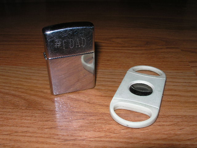 A borrowed idea of sorts . A 15 year old Zino Davidoff my wife bought me and a Deer antler cutter my father in-law gave me . He says he got it in Germany during WWII . It looks old and beautiful . I have never used it but will soon enough . The Zino still works great I might add .