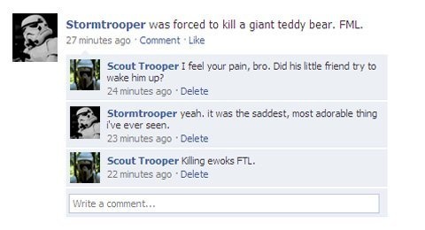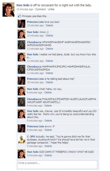 I saw this yesterday. The one where Darth Vader said they should have their settings on private made me laugh so hard I that sarlac milk came out of my nose! LMAO