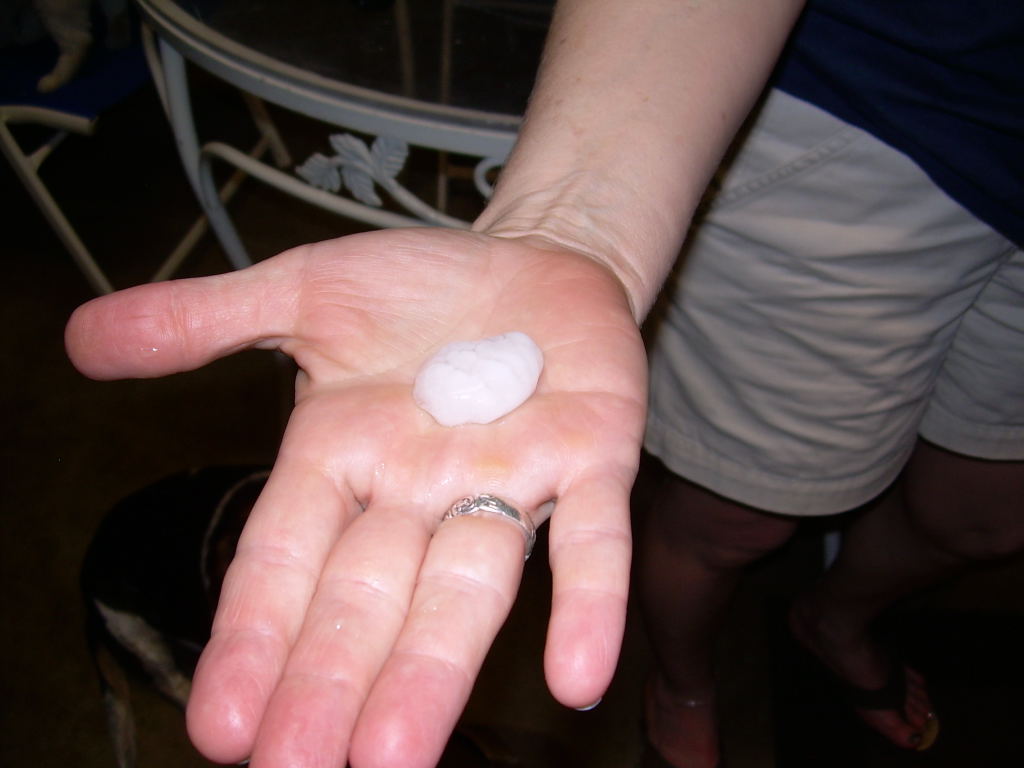 Lot's of power out in the vicinity very close to me. Knocking on wood here though.Some of our hail.