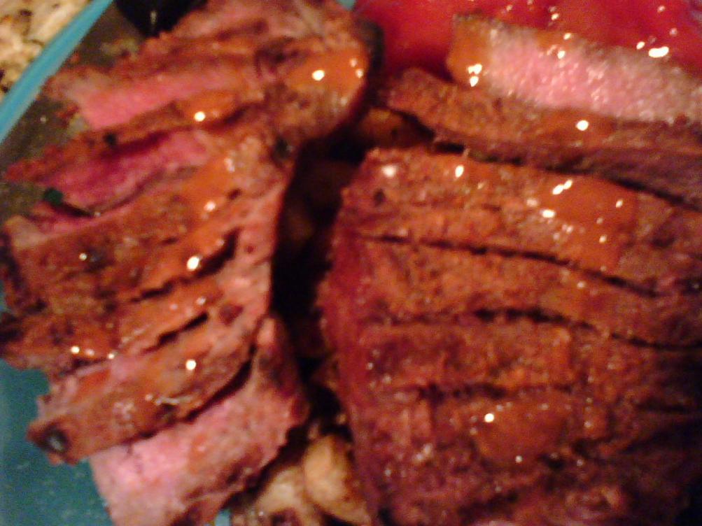 Sorry, meant med. rare, not med well. Still slightly pink and a lot of juice (did I just type that?)