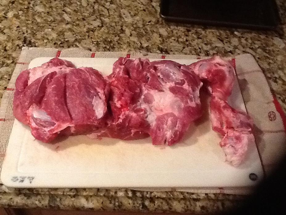Anyway, last night I deboned and splayed out the shoulder. I painted a mixture of liquid smoke and root beer on it then covered it my rib rub. I'll roll and tie it tonight and then slow cook it with some onions and dr. Pepper. Serving piña colada jasmine rice with it. Hopefully it's good.