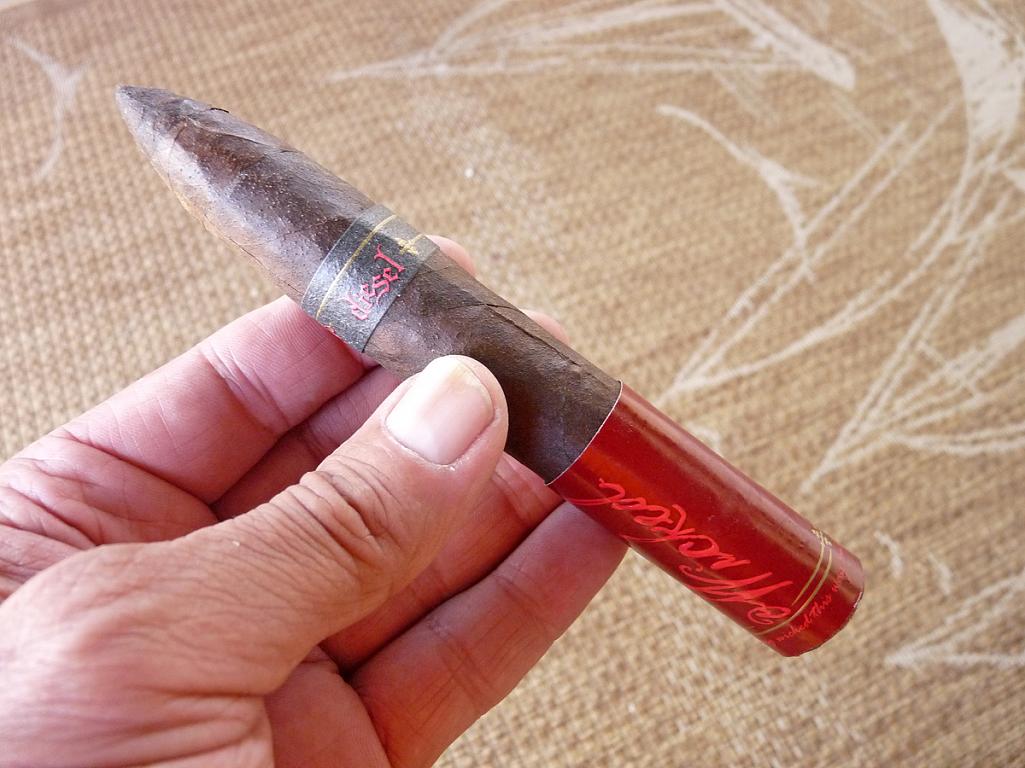 Pre-light: Get a heavy tobacco aroma, earthy, spiciness, some cinnamon/cocoa on the foot. 1st 1/3 Hard to light to start, great draw, I get cocoa and some nice deep tobacco sweetness, medium/ full start. Get red pepper mixed with cocoa with maybe some dark cherries, burn goes wonkers, let down so far, almost one dimensional 2nd 1/3 Some creamer cocoa appears with leather, still to much pepper for my taste Having to touch-up the foot for going off center. Espresso and wood take hold now, pepper dying, sometimes I wish I could get someone else to smoke the first 1/3 of all my cigars where the 2nd third gets normally smoother. Final 1/3 The ending is similar to a camping trip fire – the charred, woody and earthy mixture with boring friends, not my cup of tea. 5 out of 10 score What beats it: Perdomo Patriarch Maduro Toro Ashton VSG Casa Magna Gran Toro Alec Bradley Maxx The Fix Romeo y Julieta Viejo 'E Kristoff Maduro Robusto Joya de Nicaragua Antano 1970 Man O' War Ruination Robusto #2 All AF Aņejo