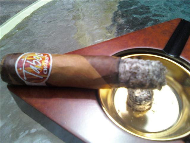 Origin: Taboo Cigars (not sure what country) Wrapper: Barber Pole The smell is a very light tobacco aroma, with a hint of grassy hay. When I clipped the bugger, the PL was a very spicy pepper, straight on, and just the PL draw left a spicy tinge in my mouth. The stick was very thick and full feeling, but also lightweight in the hand. The tobacco was scrunche din there with hardly any space that I could see. The wrapper was slightly oily and contained a good amount of large veins. Burn: The burn was not perfect, but it kept relatively straight the whole way through.The ash is mostly grey and white.The smoke density was astounding; the greatest volume of smoke from a stogie I have ever seen. First third: Upon lighting and first inhale, a blast of pepper. Plain, straight, spicy pepper. Not overpowering. This develops into a light grassy/hay flavor, with a very mellow creamy undertone. A light pepper stays the whole way through. Second third: The development of the 2/3 is a bitter one, starting off very grassy and going towards a darker coffee. The pepper kicks up a notch, but stays mellow enough to enjoy. The grassy taste turns slightly bitter, along the lines of unripened bananas (very green taste) which I did not enjoy too much but the pepper and underlying cream kept it smooth. Third third: Development into the 3/3 is undeniably the greatest part of this smoke, and one of the experiences of my smoking endeavors. There is a delicious blast of coffee, and the peppery spice drops out completely. The pepper is replaced by a heavy and delicious heavy cream. The coffee and cream flavor is along the lines of a French Roast with a generous dash of heavy Whipping cream. This mix of flavors is the most perfect thing I could ask for in a cigar, I'm a sucker for cocoas, coffees, and definitely creams. The 3/3 burns very slow, so this enjoyable fraction of the cigar lasts roughly half an hour before reaching the middle of the 3/3. AT this point the pepper comes back, but only as an undertone to the cream and coffee. At the end of the 3/3, a bittersweet cocoa flavor overpowers the coffee and the pepper overwhelms the cream, leaving a powerful end to a very enjoyable third. Overall: This cigar starts out mild with light Connecticut flavors of tobacco and hay, and a pepper stays throughout almost the whole cigar. The 3/3 is undeniably the best part of this smoke, and in itself is worth double what I payed for this whole stick! This is a very good smoke that starts out mild and peppery and end in a finale of the most delicious cream profile I could imagine. I would definitely recommend this cigar, especially for it's price. |