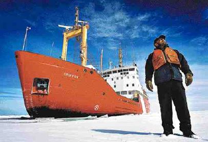 He used to get a rope, walk out on the ice and pull the ship through..... ......or at least that's what he said he used to do.