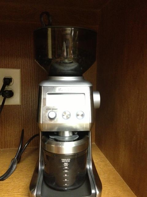 The Capresso and does the same thing as yours, Scott. However, the ground in inconsistent and the finely ground dust is extremely staticy (sp) and falls all over the counter and in the sink no matter how careful you are. It's just a messy bastig! Plus, there is that dust in the grind that makes a fine slug in the pot (which my wife hates). I was thinking maybe the manual grind would be more consistent and since it wasn't at such a high speed, the static wouldn't be generated. Here's a look at my current grinder.