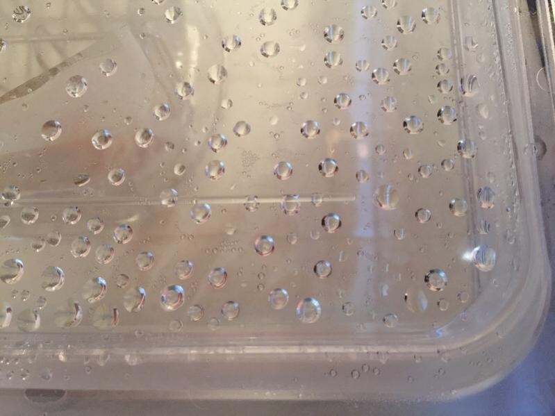 Michael, maybe something small in the center of the lid will help the condensation? Just enough to let it trickle back to the center and drip back into the container.