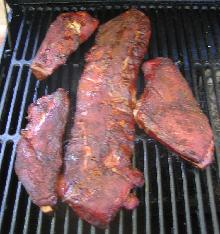 Probably another hour or hour and a half to go, then wrap 'em up in foil and head to the herf.