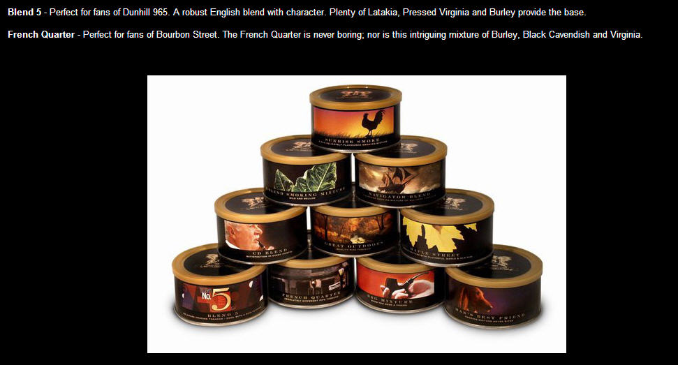 No. 5 is a blend i keep out on the porch or in the garage for those times when Im trying out a new tobacco and really disliking it. I usually dump out what Im smoking and fill it with No. 5 at that point.