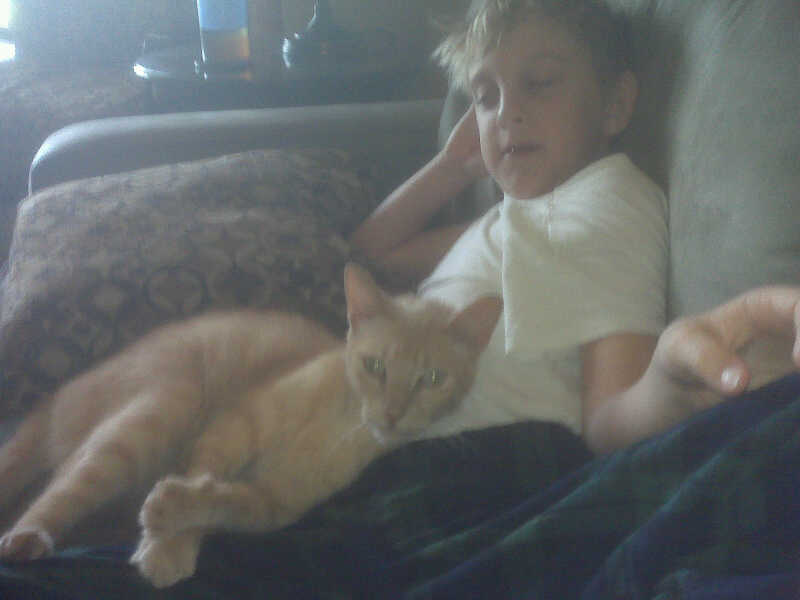 My beagle, Beau, likes to curl around my neck and take a nap.
