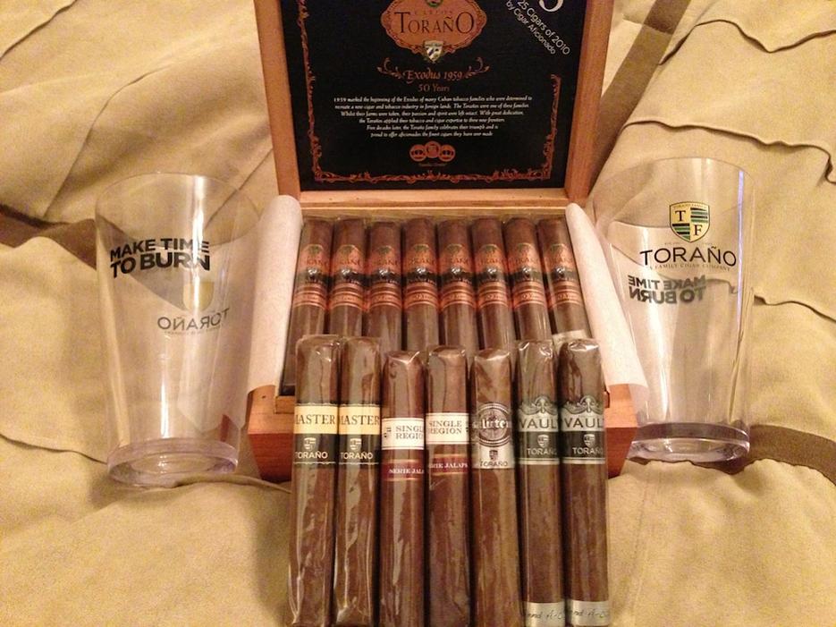 So I picked up a box of Exodus 1959 50 Year Robustos, got 7 free sticks, 2 Toraņo pint glasses and 10 raffle tickets.