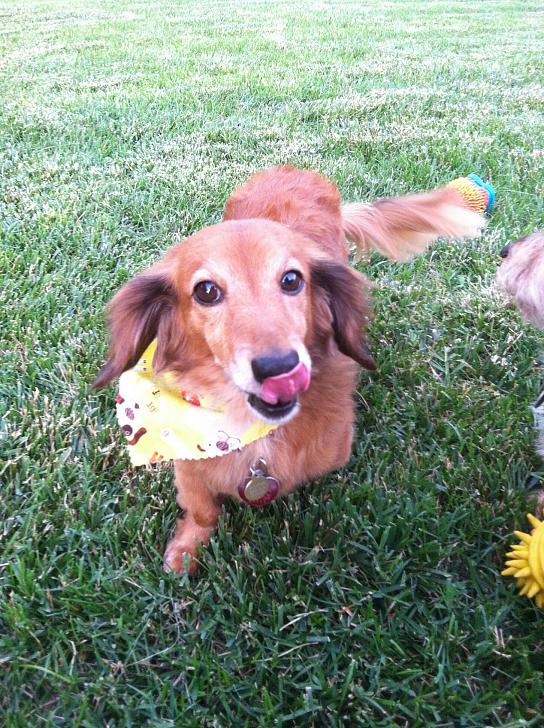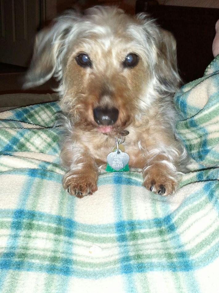 ![]() One of out two ferocious mini Doxies. This one will lick you to death! Great dogs! |