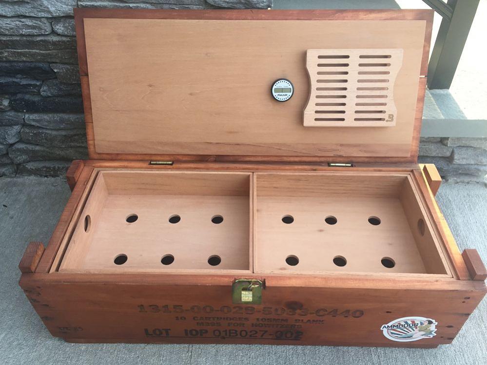 Just finished my latest large custom cigar humidor build using a vintage US Military surplus wood crate that originally held 105mm rounds for M395 Howitzer cannons.