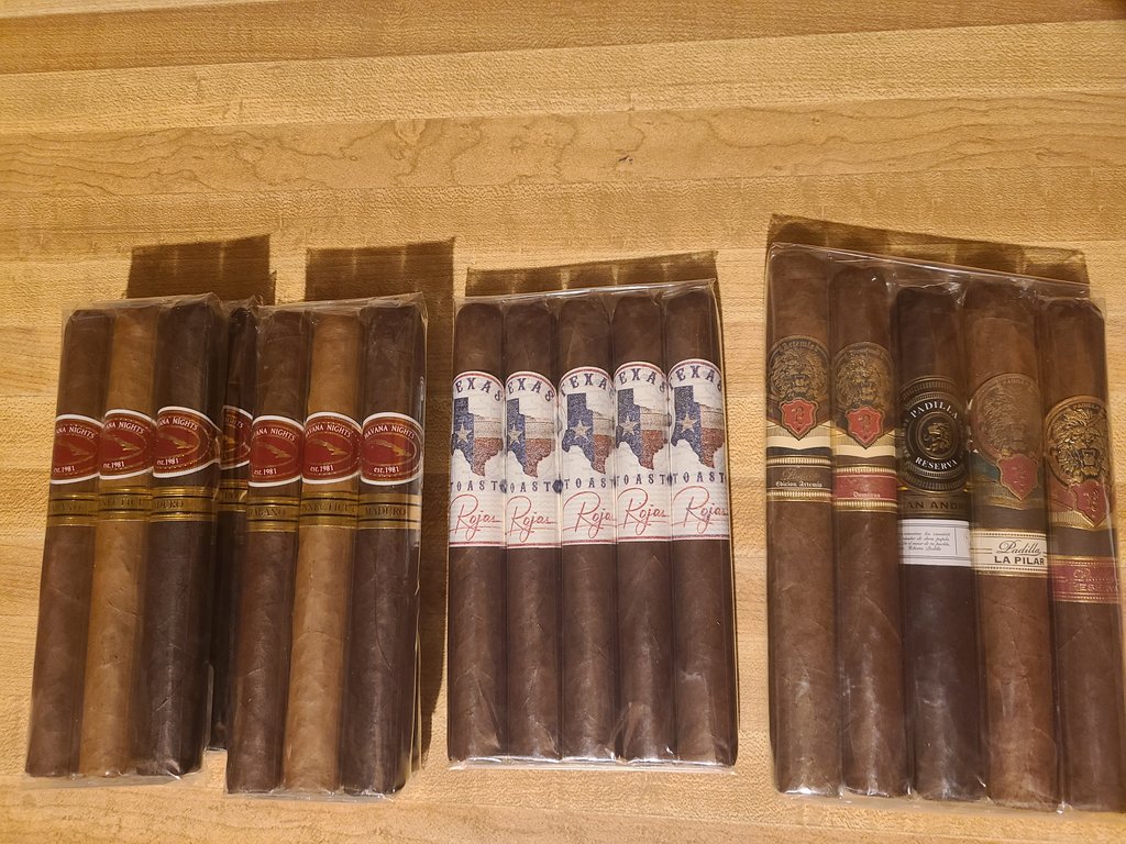 Didn't get a photo, but from the Devil Site I got a box of Oliva V Double Robusto, a ten-pack of H. Upmann by AJF Toro, a ten-pack of Nica Libre Toro, and 20 Dark Shark Toros. I'd never heard of "Dark Shark" cigars before. Apparently it's a maduro, so I've got that going for me.