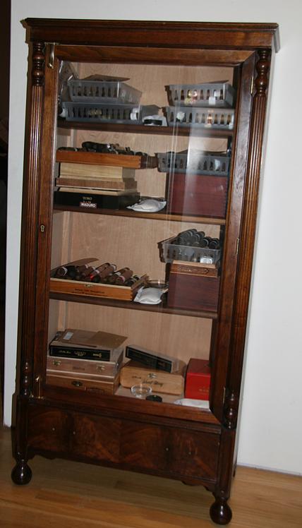 Years ago when my sister-in-laws father passed away I took an old cabinet from his house and kept in down in my basement. As this crazy hobby started gettin out of hand I decided to convert that old cabinet into a humidor. I thought it was appropriate because he was a big pipe smoker.