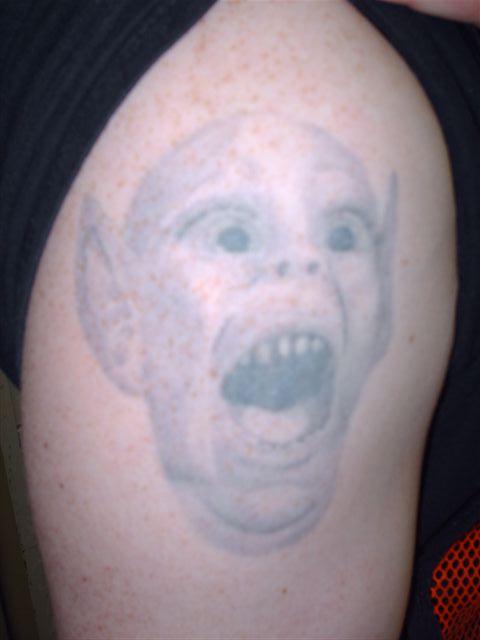 One of my two (I do not have pics of the other one on my leg), just below my neck between my shoulder blades.