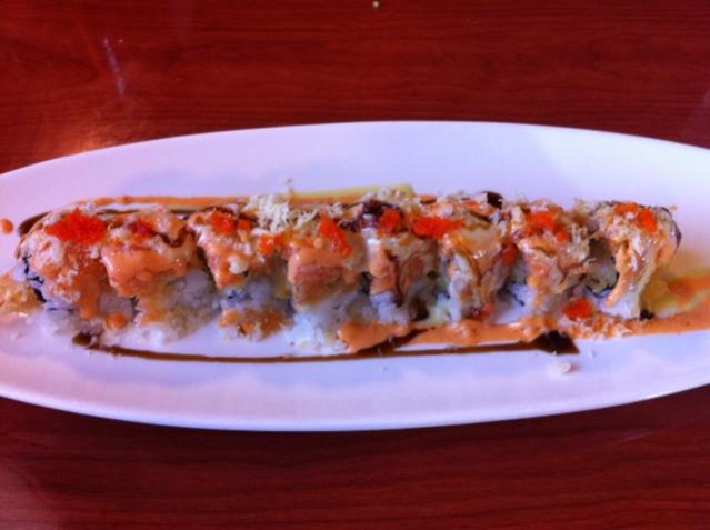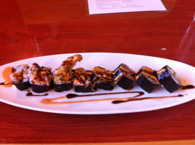On the plate with 2 rolls, the one on the left has jalapenos in it with a bit of sweet sauce. The jalapenos were so overpowering you couldn't taste anything else. I love me some wasabi and to the point it hurts, but jalapenos aren't my choice for heat, that's for sure.