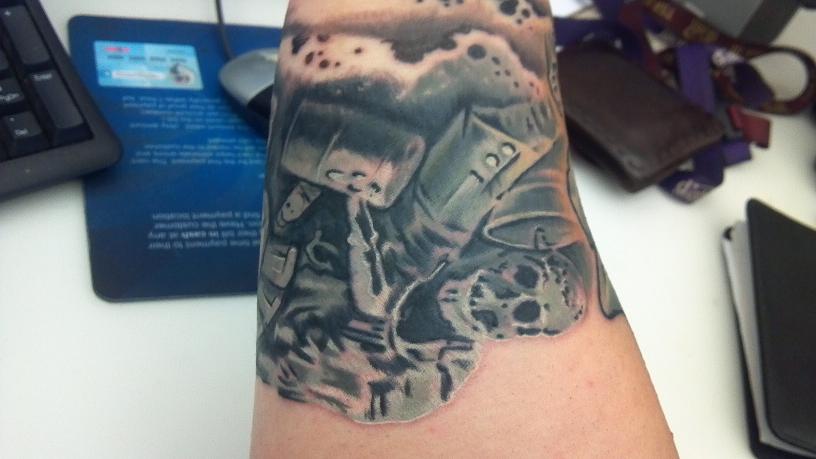 My Wife is also getting a half sleeve from the same artist (Matt Myrdal) with Pino Bros in Cambridge, MA. More pics to come. Probably about 3 more 8 hour sessions.
