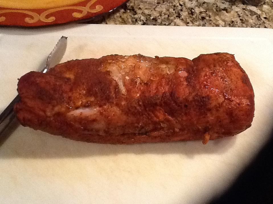 We finally got power back after sandy but my in laws didn't so we had my mother father, sister and brother in law over tonight as well as my niece and nephew for our first hot meal since Monday afternoon. I did a pork loin roast, smoked over mesquite and hickory with an smoked apple cider and sage gravy. Mashed potatoes, roasted cauliflower and some red wine rounded out the meal.