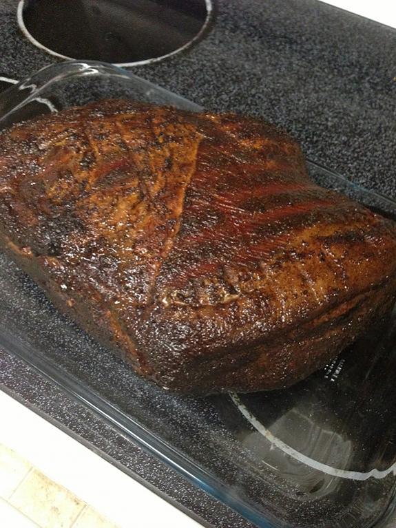 I brined and smoked a butt for the super bowl get together i was going to. I tried something a bit different with the brine, on top of my normal salt, pepper, thyme, rosemary, bay leaves, onion and garlic powder, i also added crushed red pepper, cayenne pepper, and about 1/4 bottle of crown royal. Let it cook a bit, simmer for awhile pulling all the flavors out of the herbs and brined it for about 18hours.