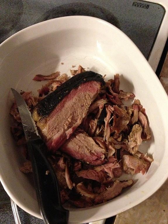 This was all in prep for not doing traditional bbq sandwhiches, we were doing pulled pork tacos. Anyway, the brine worked amazingly well. It had some flavor from the crown and me and the host that knew what was in it could pick it out immediately in the meat, and it was good. Im shocked at how good it was. it smoked for about 12 hours btw, left it a tad underdone, (pulled and wrapped in foil at 160) since it was going to be reheated the next day.. we cut it up and finished it in the oven at the host house. I threw a few friends on teh smoker while I was at just because i had the room and it ended up being my dinner saturday lol. anyway, PICS!