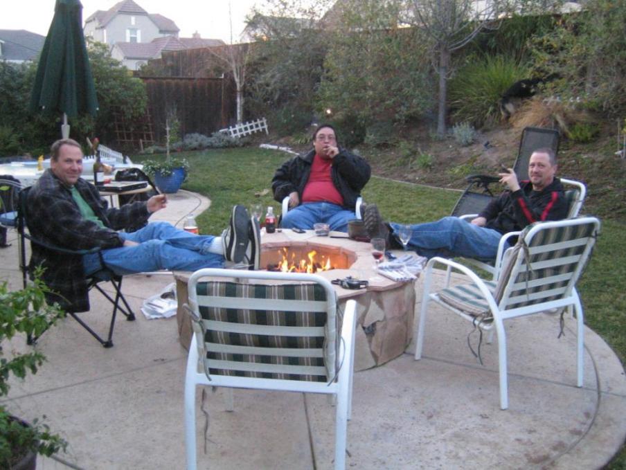 Father and son herf on the back deck. That is KenS and his son facing the camera. My son has his back to the camera. The deck is good until it gets cold, the hot tub works well in the winter.