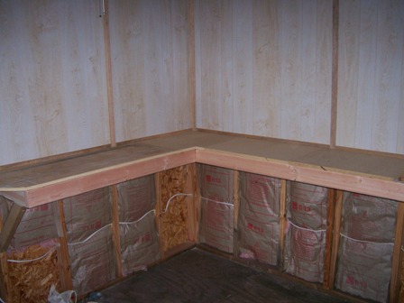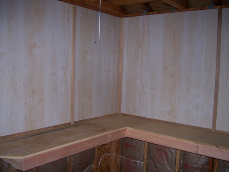 I got the "bar" roughed in this weekend, just have to decide what kind of material I want to top and finish it with. Also need to get some more paneling for one wall, thinking of using peg board. Here are some pics: