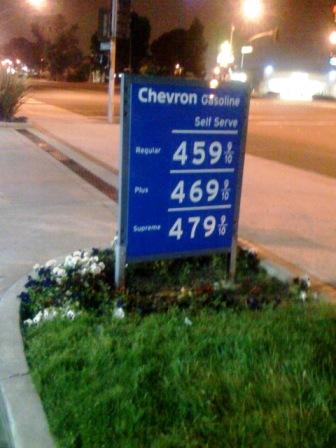 The cheap stuff is $2.11/gallon here in central California. But Cheveron and Shell are considerably more, like $2.25/gallon.