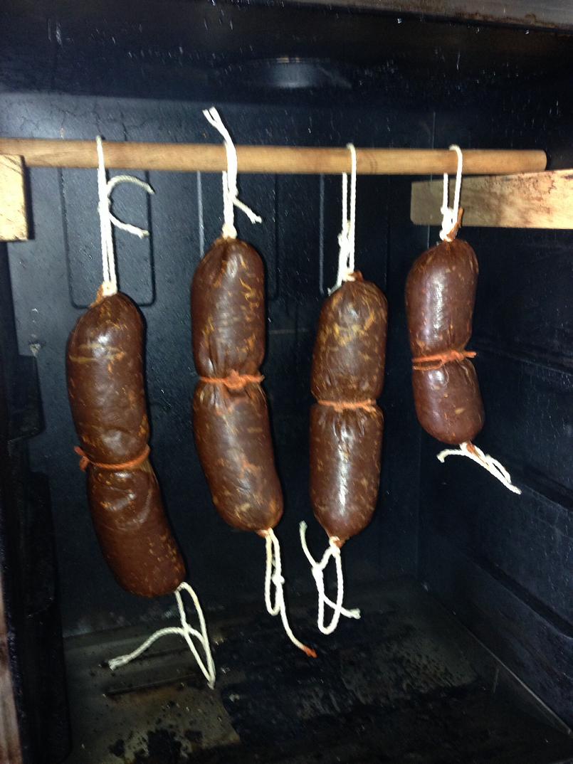 Pic of my nduja cold smoking. All are currently resting in my curing chamber. I'll try the first after 30 days. I plan to take one to a full year.