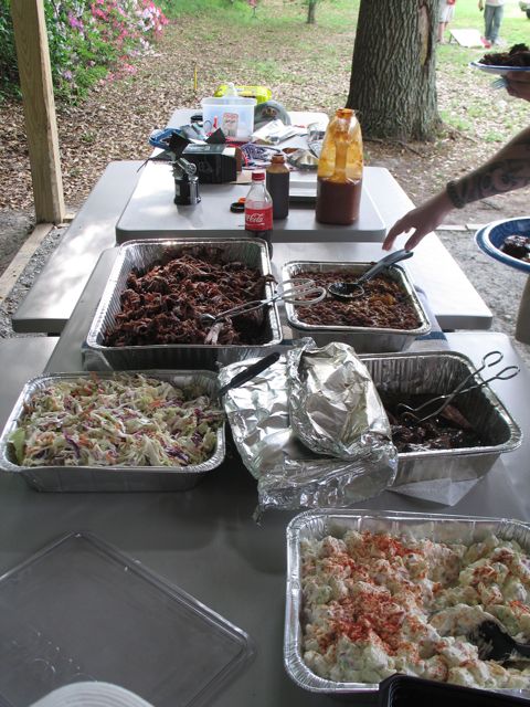 Pulled chuckie Rib tips cole slaw potato salad hog peach beans cake for dessert (not shown)!!! |