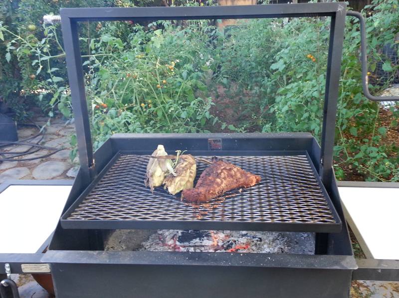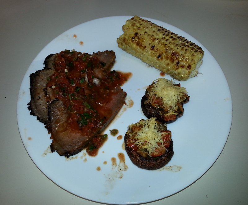 Fired up the Santa Maria grill yesterday afternoon. Along with stuffed mushrooms on the pellet cooker and my trademarked "DILLIGAF plating job"