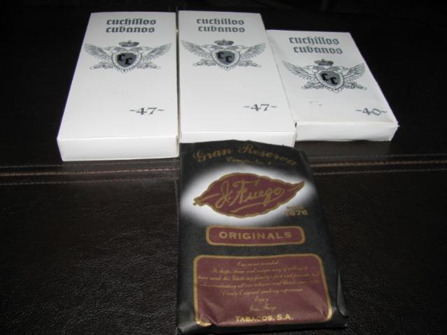 Pic 1= Alec Bradley New York, Tatuaje 7th reserva Pic 2= Viaje Oro Reserva, Skull & Bones, Holiday Blend Pic 3= 5 packs of Cuchillos Cubanos 47 &40, J.Fuego Gran Reserva Corojo Pic 4= Bundle of NHC ELO6 Pic 5= Box of El Triunfador lanceros ![]()