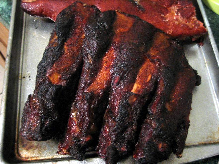 Thanks, Bill, I thought I would just let em go yesterday, i was worried when I left that the ribs would be in danger in a car(temps), but it never got over 40-sumpin yesterday, so I think i just blew that off...plus they were smoked, so they were not gonna go bad. Duane, I call too much smoke when they smell like doofus ribs, where you can tell people have the desire to create great food but just drown the ribs in smoke, thick, chokey, white wood smoke. I like to use a thin vapor of pure, blue smoke coming out of the chimney. It makes a difference in the aroma of the cold meat. When you get the hang of your machine and figure out the ins and outs, the do's and don'ts, you will begin to taste the difference. You will have good cooks and bad cooks, just like everybody does. A good way to describe too much smoke, when it smells like a house fire and not food. |