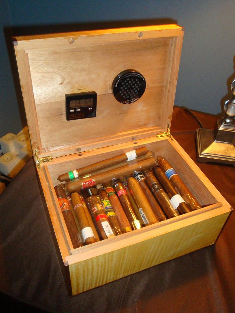 I actually started this back in December when I started getting serious about cigars, and finally finished it about a month ago. I made a lot of mistakes (first time using veneer), but it's functional and looks good from a distance!