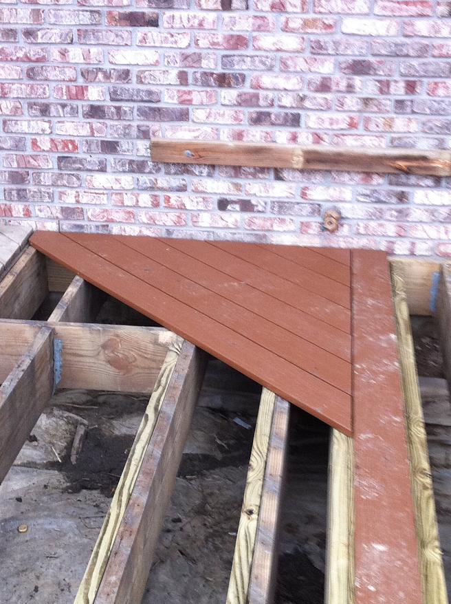It's not a big start, but I'm starting to get the hang of it now. I'm using Camo Fasteners and it's taking just a bit of a learning curve to get this all figured out. After about 3-4 more boards, I'll be able to start using full length 12', 16', and 20' boards which will do wonders to speed things along. Probably done working on it until Wednesday as I have an exam on Tuesday to prepare for.