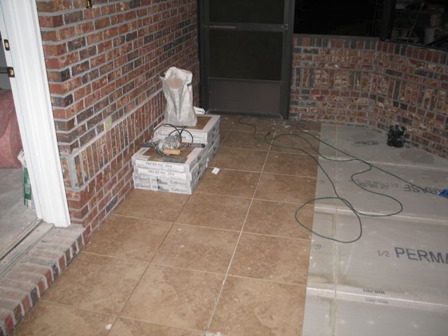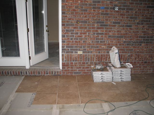 Attachment 2542 The whole where the hot tub was is fixed, sub floor is all in, and the tile is being put down. Attachment 2543 It is hard to see in the picture, but the box with the TV coax and phone line is in on the wall. The switch for the ceiling fan is also on that wall next to the door. The ceiling fan mount is in the ceiling. The smoke eater is at the house and will be mounted on the back wall. The windows are ordered and should be in this week. The door is ready to put in. The AC duct work should be done this week. They are also running me a piece of PVC in the attic from just above where the TV will be to the back of the room. That way I can pull wires for surround sound/stereo/etc in the future. I was also really surprised when he told me how many square feet it is. It is an odd shaped room so it was hard for me to guess... but I was thinking maybe 120 square feet. It is actually a little over 300. |