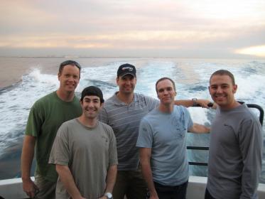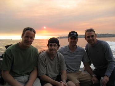 Attachment 696 Okay, that's my buddy's catch. I caught one little bugger but he was too small; I had to let him go. Attachment 697 4 of 5 of us. Attachment 698 You can see what affect the fires have had on the air. Makes for one helluva an interesting & beautiful sunset. While Catalina is a good 30 miles off the coast of L.A., it was snowing ash as we dove. Attachment 699 This girl wasn't there: Attachment 700 |