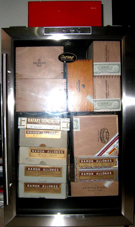 so my vino arrived and i threw a few boxes in. i left some space between the 2 columns 2 rows deep of assorted boxes to allow some air flow, other than that, this thing's packed.
