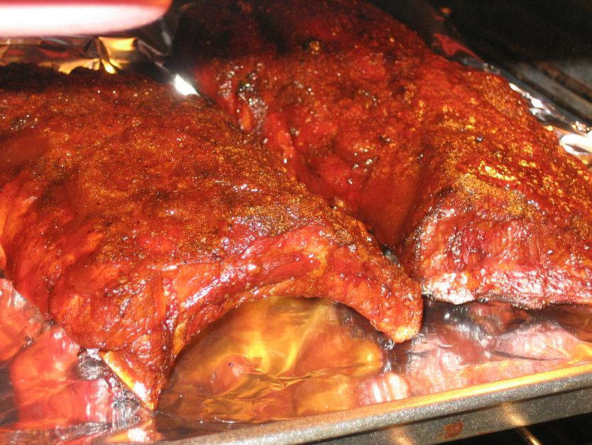 then unwrapped it and slathered it with SBRays as well as slathering the ribs Let em run almost another hour.