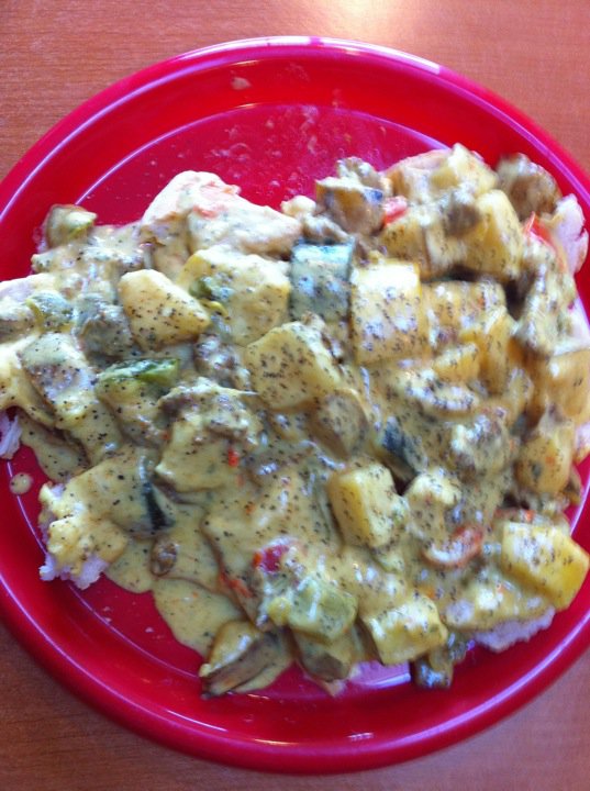 In May 2009, I ate breakfast at Boma 4-5 times over the course of a week and had one of the most awesome breakfast dishes ever. I was fortunate to find a recipe for the exact same thing (or very darn close anyway). I made this again yesterday and it is a great meal.