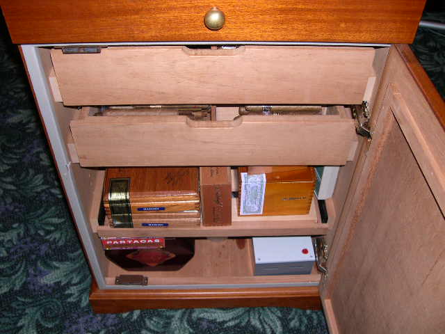 Here is my new to me Aristocrat-DX. Although this is used it looks fantastic with only a few minor dings and/or scratches. I have been watching this particular humidor on craigslist and e-bay since the middle of the summer. After a few offers my offer was accepted. Included with the humidor were a quantity of Cubans containing Monte le's 2001, Cohiba VI, H.Upmann Mag 50 LE etc. Needless to say I am more than happy. Also included is a cigar from the festival del la Habana 2000. Any info about this cigar would be appreciated. Thank you