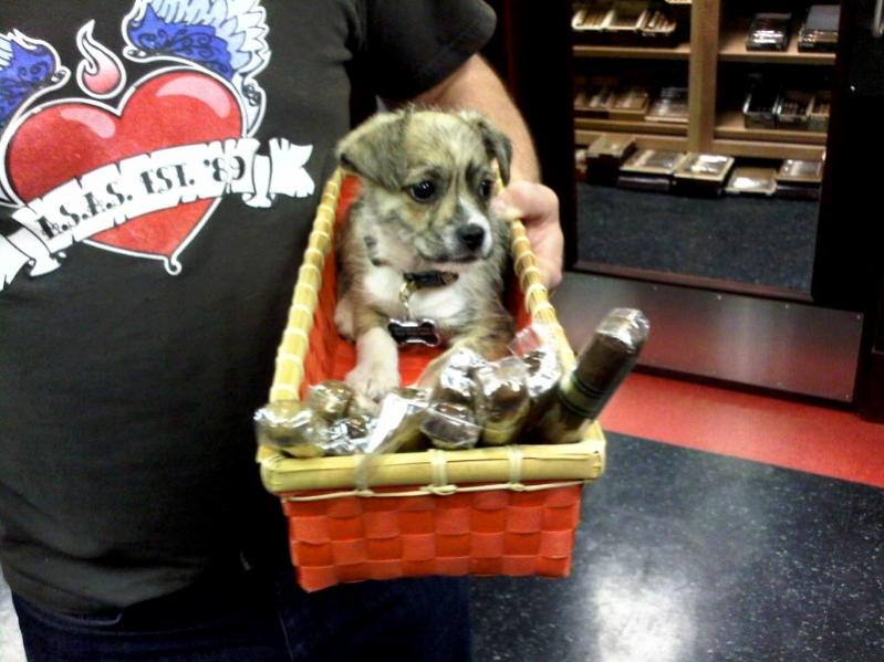 His name is Stogie, the lady wanted a small dog so we went and pick up this guy! He holds his chew toy like a cigar in his mouth, its hilarious. So now I have a store mascot when I go to work haha. More pics to come.