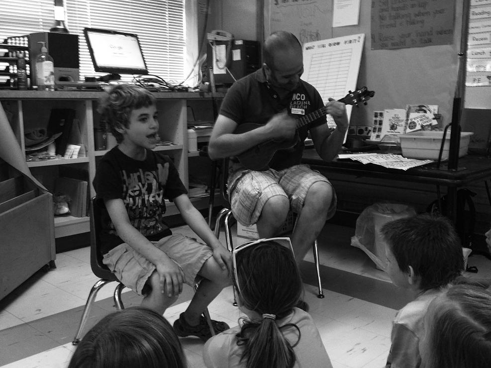 I have TERRIBLE stage fright, so I figured a room full of kindergarteners is a great place to start. Alex (my son) did a short intro on what an ukulele is, how to say it properly, where it comes from, etc.