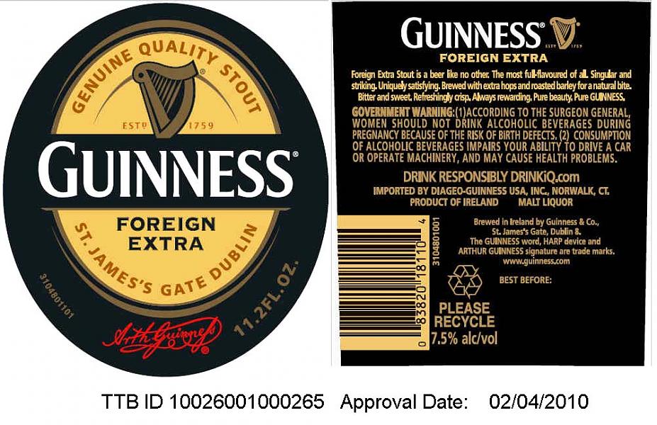 Here in the USA, for most of our lifetimes, we have only been able to buy Guinness Draught and Guinness Extra Stout. We have been unable to buy the "Holy Grail" of Guinness beers, their Foreign Extra Stout. But on October 1st Guinness will release their Foreign Extra Stout to us here in the USA. The label indicates that FES is made at St. James Gate, Dublin, rather than Canada where the other two products come from. Some of you who have travelled in the Caribbean may have had FES before, as it is available there.
