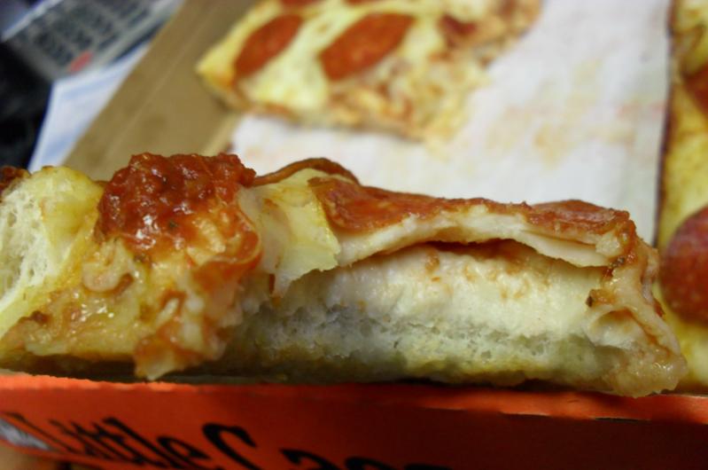 a compact P&S camera to shoot it, so as a photograph, it'sa pretty a-poor, paisan. I went to Piggly Wiggly to pick up a whole Ribeye since they were on sale, but since the store is in such a bad neighborhood, you essentially have to ASK the butcher to bring you one out. Otherwise, dudes be puttin em down dey pants leg and $hi+. And since there was no butcher in sight, I decided to just go pick up a Hot and Ready Pizza from L.C.s. As 'luck' would have it, they were putting their new deep dish pizza out as a H&R item, so I figured I would give it a shot. Spoiler alert, you might wanna pass. As you can see from the photos, the pizza comes as two square pizzas in a box, and it is over an inch thick. Before you start to drool, what you end up with is 4/5 crust and 1/5 cheese and sauce and pepps. Now granted, for $8.00, you aren't gonna get Chicago Style Deep Dish ANYWHERE, but when you are L.C., maybe you shouldn't TRY to do a deep dish if this is how you are gonna do it. Again, I would suggest passing on it unless you are hungry, have $8.00, and do not care that it is a big-a55 box o crust. And when weighed against their regular hot and ready pepperoni pizza, this thing is practically STACKED with toppings, lol. Its ALSO $3.00 MORE than a standard H&R pizza, so that is not a fair comparison. So check out the photos and judge for yourself. TO ME, as a hot and ready item that you do not have to wait for, even with the extra three dollars outlay, it is not a bad deal. But it is not what I would term a deep dish pizza. And you should know going in what you will get. |